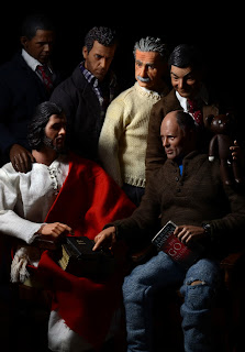 use an image from art history, from Jacques-Louis David painting The Death of Socrates (1787). Instead of the great Socrates admonishing his students at the moment of his execution by poisoning, my image has me surround by dwarfs from Snow White. Personally I think Grumpy is conniving something. Never trusted him.